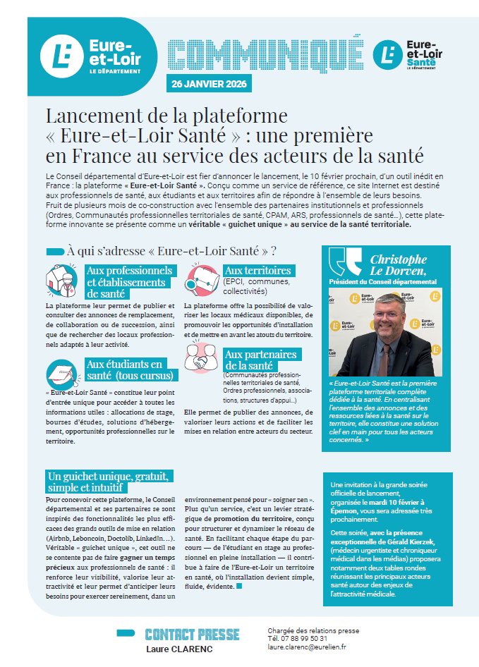 Lancement de la plateforme Eure-et-Loir Santé le 10 février.