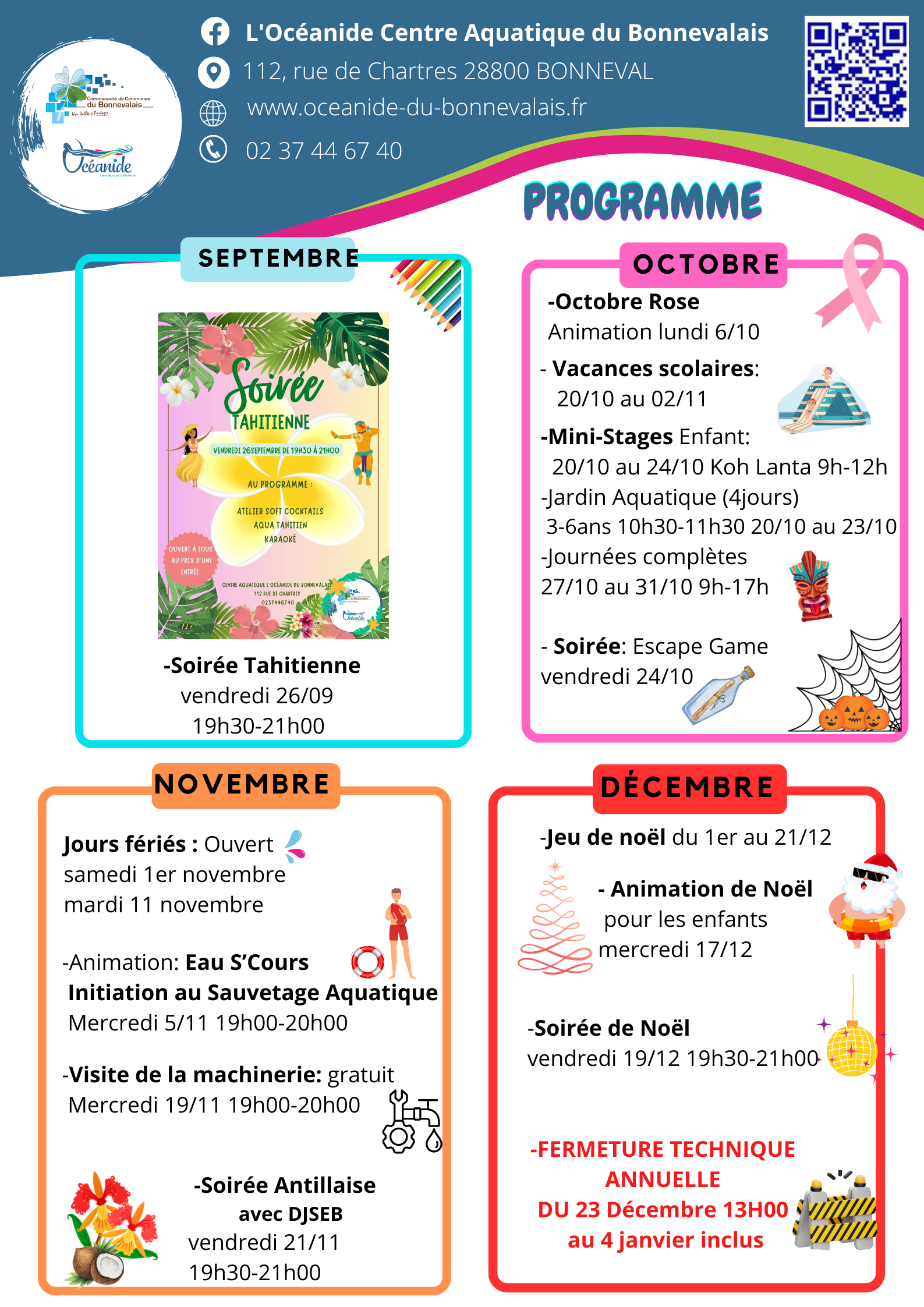 A noter dans les agendas, les activités, soirées, stages organisés à l'Océanide !